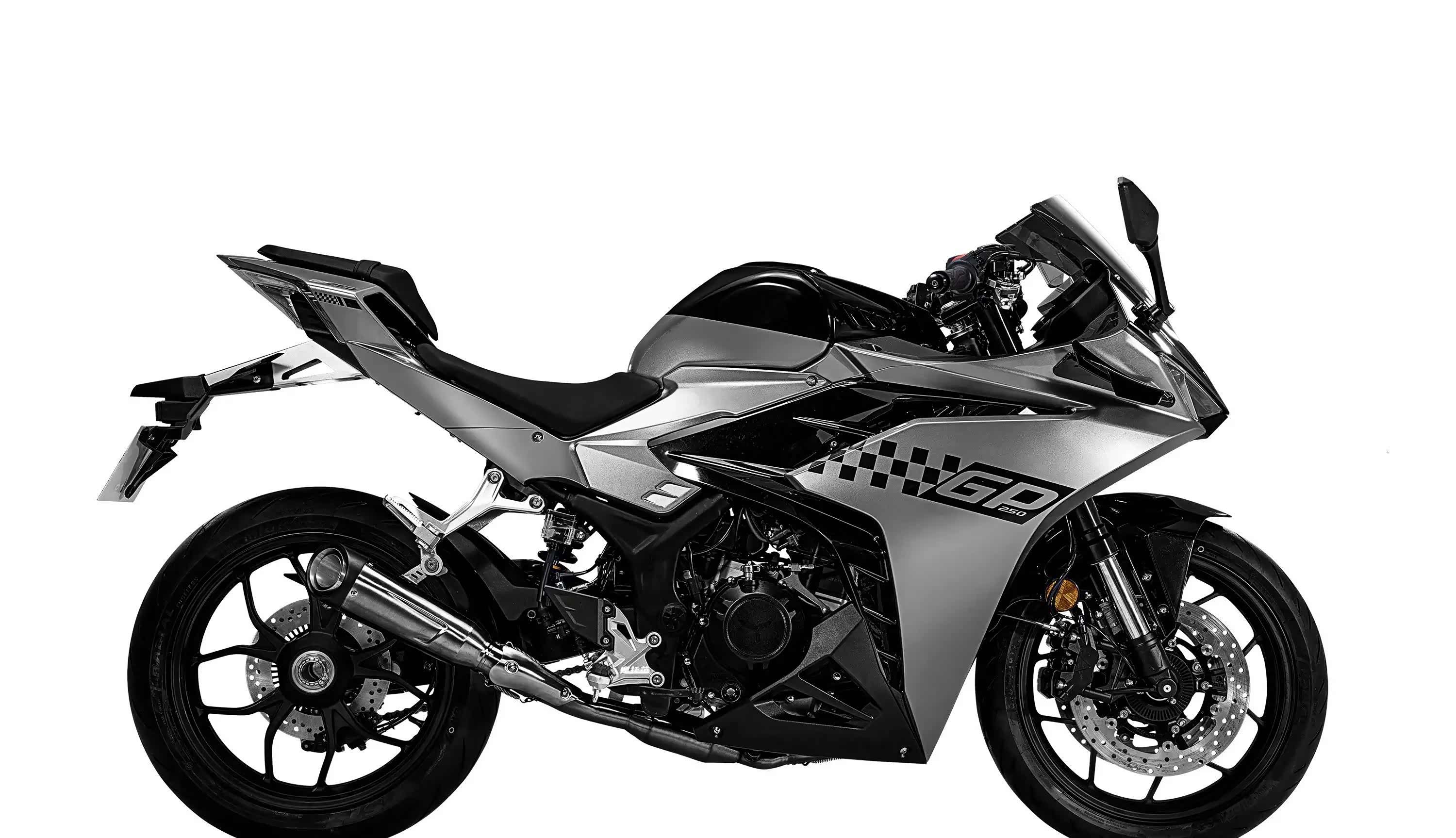 在外观的设定上这款车和上一款GP250并没有太大不同,只是它的配色会更加的艳丽,并且这款车也会有基础版和单摇臂版的区别。