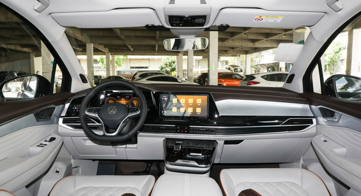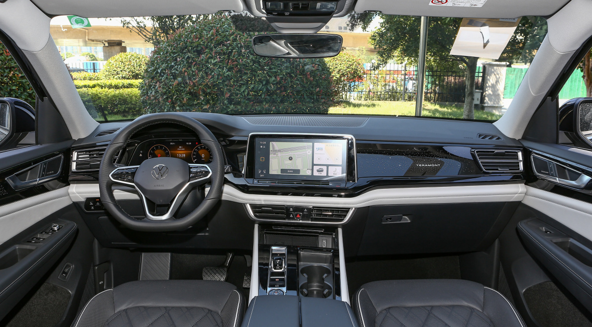 比如揽境的两块屏幕采用了双联屏设计,而方向盘采用了实体按键而不是和途昂一样的触控式按键。虽然揽境在中控台部分采用了悬浮台设计,来达到和MPV一样的设计风格和提升储物空间;但是并没有途昂采用的镂空式中央通道来得更有设计感,而且途昂此种设计对于放置物品的收纳性和便利性更好。