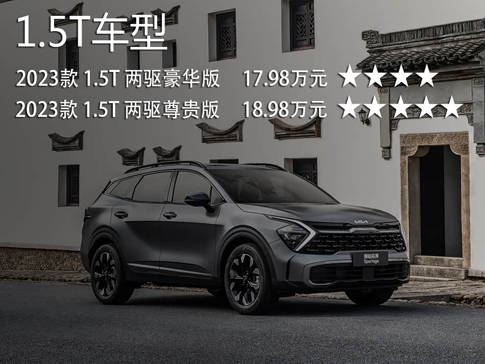 首先是搭载1.5T发动机车型,只有两款车型,分别是售价17.98万元的1.5T豪华版和18.98万元的尊贵版,均为前驱车型。如今小排量当道,即便是一台1.5L发动机,在匹配了涡轮增压器后,可以迸发出200马力,可以满足日常使用。两款车均配有18英寸铝合金轮毂、8气囊、胎压显示、安全带未系提醒、ESP、车道偏离预警、车道保持、主动刹车、车道居中保持、道路交通识别、前后驻车雷达、倒车影像、定速巡航、前排无钥匙进入、无钥匙启动、真皮方向盘、双12.3英寸屏幕、仿皮座椅、全LED自动大灯、电动调节外后视镜、自动空调、后排空调出风口,尊贵版比豪华版多了全景影像、全速ACC、全景天窗、车顶行李架、远程启动、前排无线充电、主驾电动调节座椅、Kia Connect车机、手机远程控制、全车一键升降车窗、电动折叠外后视镜等,两款车型尊贵版更值得推荐。
