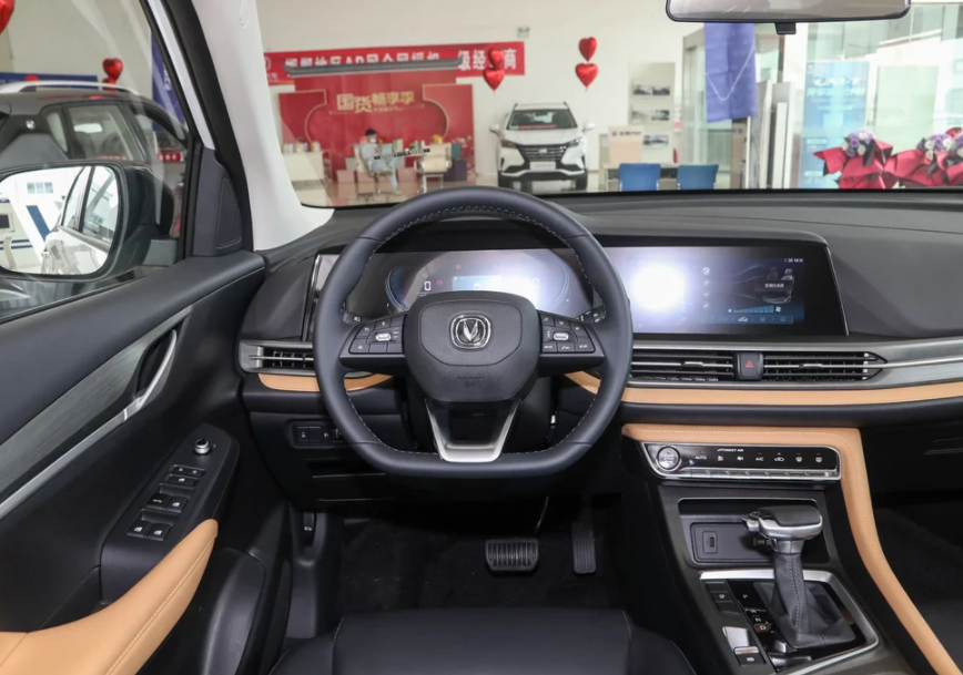 但大概是因为受限于成本缘故,车内在用料方面基本还大都是塑料材质,质感相对一般。值得一提的是长安CS55 PLUS非对称式的中控台造型,非常的科幻前卫,全液晶仪表和悬浮式中控台的设计也很讲究。