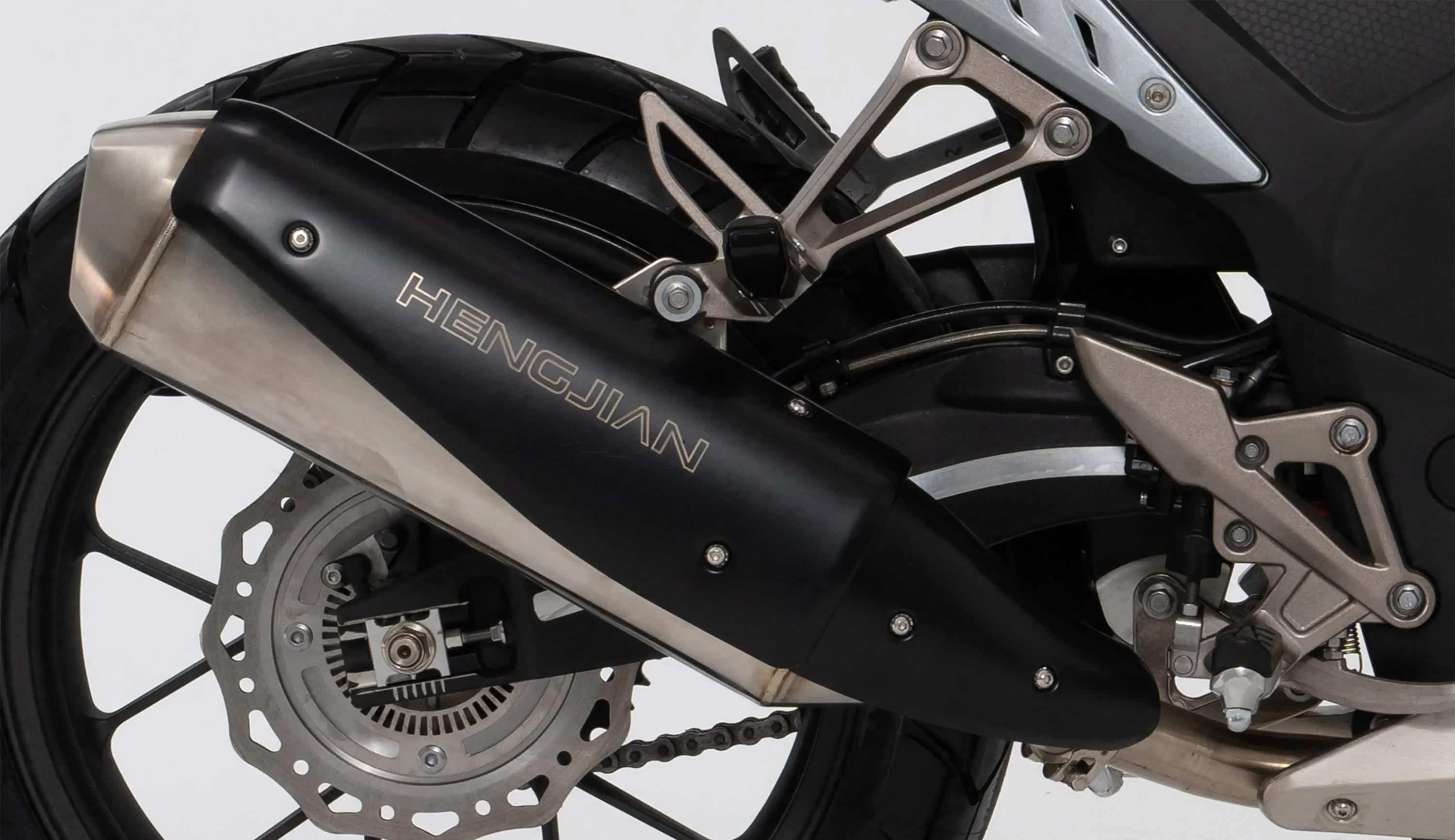 1.外观方面,既然是高仿车型,那么就应该从外观着手仿的有模有样,而事实上这款车也不例外,它基本沿用了CB500X的风格,只是整车的配色出现了变化,并融入了一个原车护杠,对排气管也做了重新的设计。