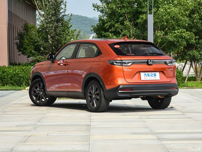 车辆尾部采用时下流行的贯穿式尾灯设计,但尾灯外部和灯腔内部造型有所调整,熏黑元素搭配极富锋芒的几何图形排布,带来前卫的潮流化表达。该车尾部造型颇具层次感。无论是车尾顶部的扰流板还是浮雕元素的牌照区掏空,无不展现着该车的运动活力。车尾底部哑光黑色保险杠看上去简洁大方,该车排气采用隐藏式设计。整体来看,全新一代本田XR-V和旗下纯电车e:NS1保持相近的设计风格,充满十足运动气息。