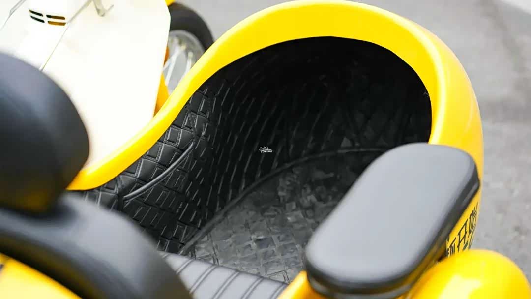 车灯规格这一块,CoCo边三轮保留了经典的,橘黄色和红色灯罩,除了转向灯之外,头灯、尾灯、边斗尾灯、边斗辅助照明灯均为LED形式,虽然规格不算太高,但是亮度和科技感还是不错的。