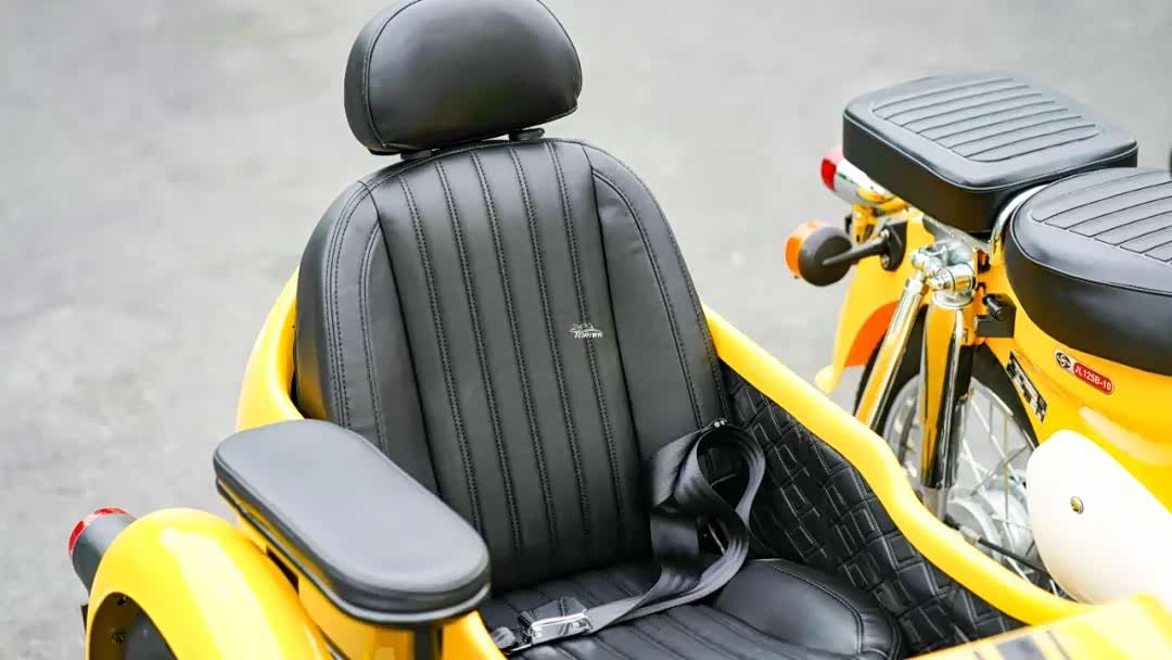 同样是受制于尺寸的缘故,CoCo边斗除了能够坐人之外,是没有额外储物空间的。不过单就乘坐舒适性来说,这个边斗座椅的设计还是非常不错的。类似主车“毛毛虫”纹理的座椅,还有配备皮革扶手,甚至是安全带。