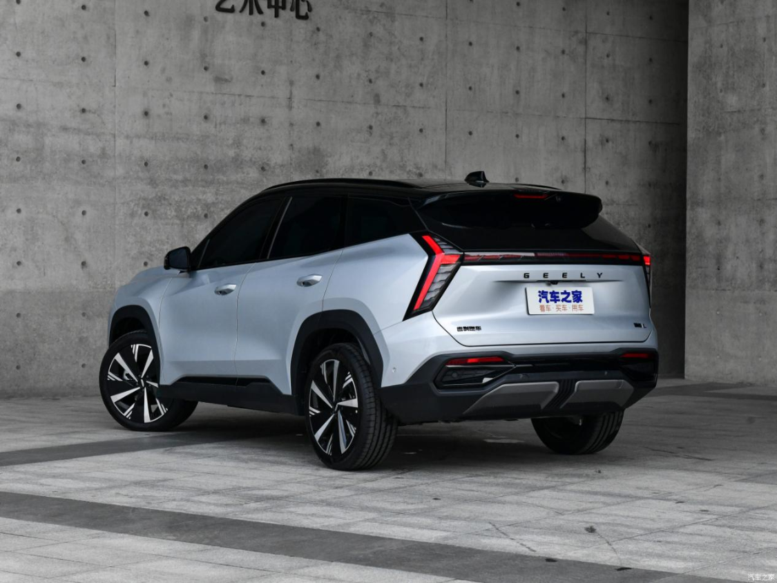 博越L的车身尺寸为4670x1900x1705mm,轴距为2777mm。在车长和轴距方面与哈弗神兽相比处于劣势。上扬的腰线让整个车侧呈现出一种俯冲式的姿态,双五幅轮圈的尺寸也是19英寸。