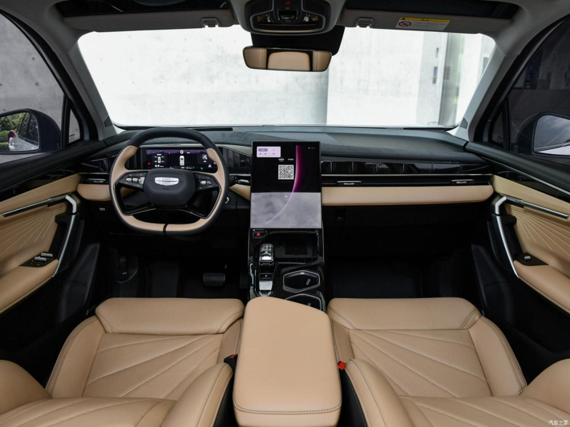 吉利博越L内饰横平竖直显得比较规矩,通过撞色的搭配彰显出层次感。13.2英寸的中控屏采用了竖屏设计,搭载银河OS系统。屏幕支持360度全景影像,支持HiCar手机互联。就功能性来说,并不如哈弗神兽丰富。