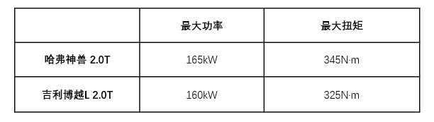 反观吉利博越L的2.0T发动机,拥有160kW的最大功率和325N·m的峰值扭矩,在参数方面,并不如哈弗神兽抢眼。