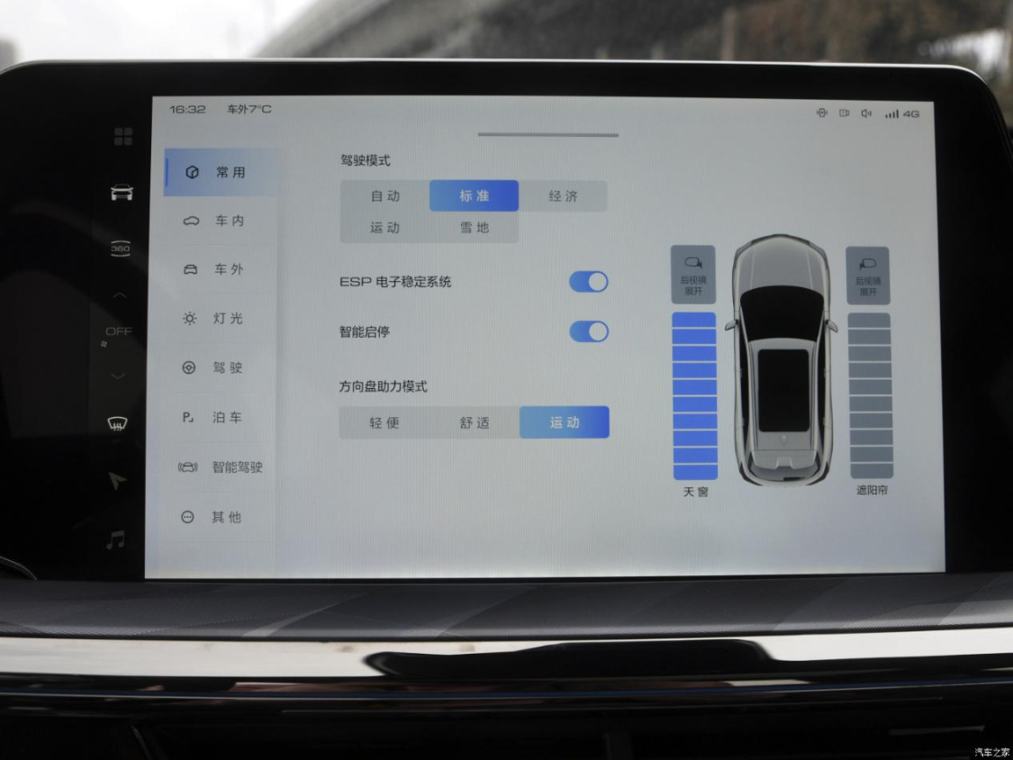 哈弗神兽14.6英寸中控大屏采用了偏向驾驶员的设计,不仅分辨率清晰,触点的反应速度也很快,还支持手势控制。屏幕最左侧一列是导航、空调、影音、车辆功能的快捷键。小程序中也有抖音、行车记录仪等功能。