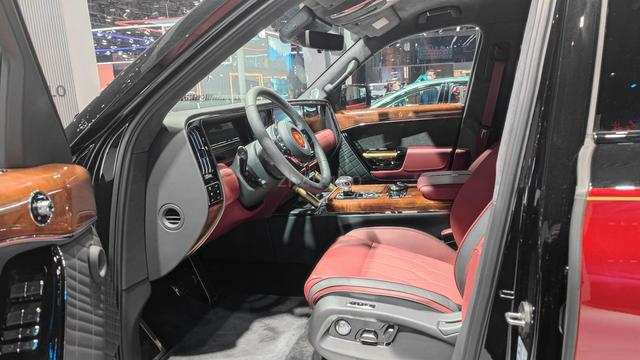 至于新车的内饰设计方面,同样也是豪华气息浓郁。首先在做工用料方面表现的非常具有竞争力,提供了桃木真皮和高端材质的包裹,摸起来更有质感,而中控台上还配备有大尺寸液晶显示屏,配置非常丰富。此外,新车还提供了4座头等舱布局,整体的定位与奔驰迈巴赫GLS在同一状态,并且采用了丰富的配置进行匹配,整体的商务气息更为浓郁。第二排座椅采用了独立的设计,配置有253色氛围灯,座椅提供加热/通风/按摩以及腰撑与腿托功能,车载电视、液晶娱乐屏以及独立多媒体控制等实用的设计,后排座椅还提供座椅角度、腿托及头枕的多向电动调节,还配置有电动遮阳帘。
