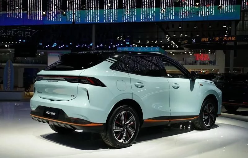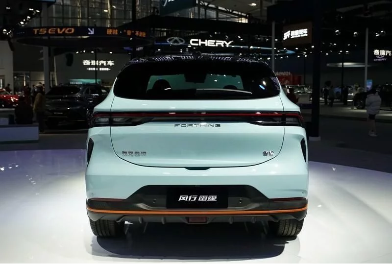 东风风行全新纯电动SUV雷霆Friday在2022广州车展亮相。新车采用封闭式前脸设计搭配蜂窝装饰面板,整体设计时尚前卫。外观方面,新车的整体设计动感时尚,前脸造型突出,不仅有纯电动车的封闭式前脸设计,下方还搭配了蜂窝造型的装饰,此外尺寸夸张的大灯组合由上下两部分组成,上半部分细长、犀利,下半部分宽大,集中车头的视觉重心。从申报信息来看,该车定位紧凑型SUV,长宽高分别为4600mm、1860mm、1680mm,轴距为2715mm。