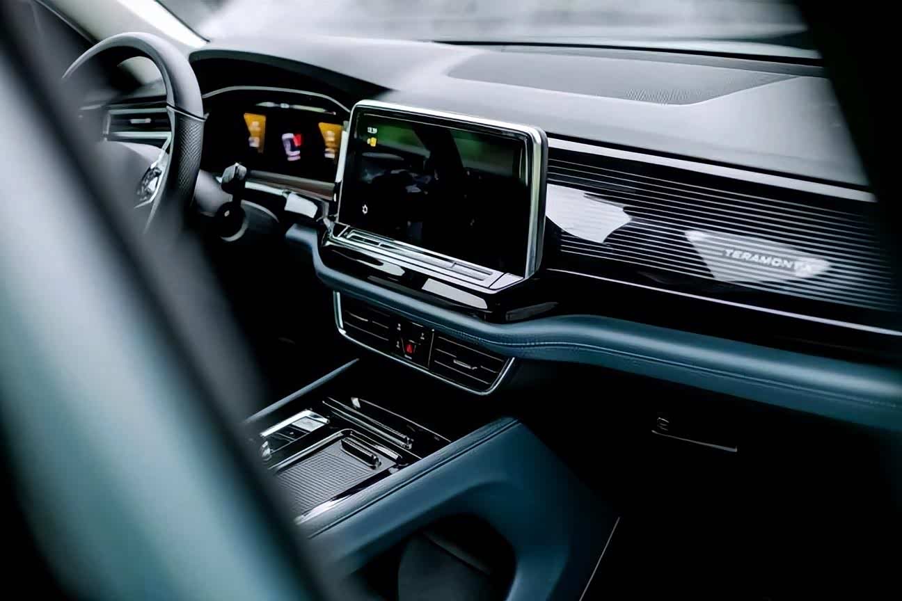 悬浮式仪表和电子档把加上触摸式按键使得车内科技感十足,也让操作更智能更便捷更直观。全新途昂X的智能化就是它的大智慧,运用IQ科技实现科技如IQ.智慧车联、IQ.智能导视 、IQ.Drive 智驾管家,让其处处闪耀智慧光芒。其中IQ.智能导视利用光学反射原理,将车导航路线/ACC 与车道保持等资讯投射在挡风玻璃上,信息显示清晰可读,并且该功能的显示位置上下可调,还可以通过调节显示位置匹配坐姿,大大提升行驶便捷性与舒适性。