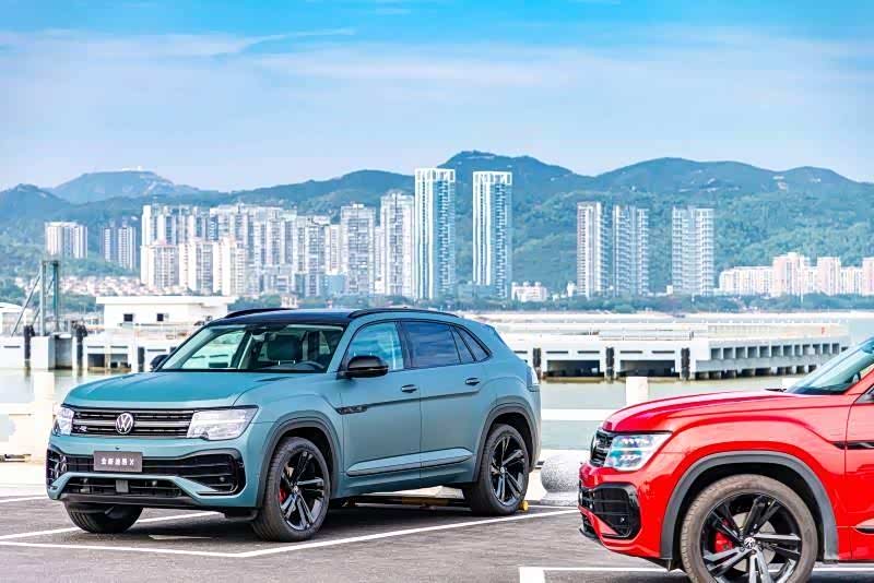 全新途昂X一共有六种颜色可供选择,分别是玄武黑、冰川白、珀光银、超导红、星辰蓝和旷野青。我最喜欢的颜色是青云限定版——旷野青,这款车与其它几款不同,它的车身摸起来有磨砂质地,手感相比普通车身来说舒服很多,由于它的哑光磨砂质地使得车身的青色看起来十分舒服,仿佛是看到了青山绿水那般自然的青色,十分适合喜欢低饱和色调和绿色植物的用户,是一款极具高级感和耐看度的色调。