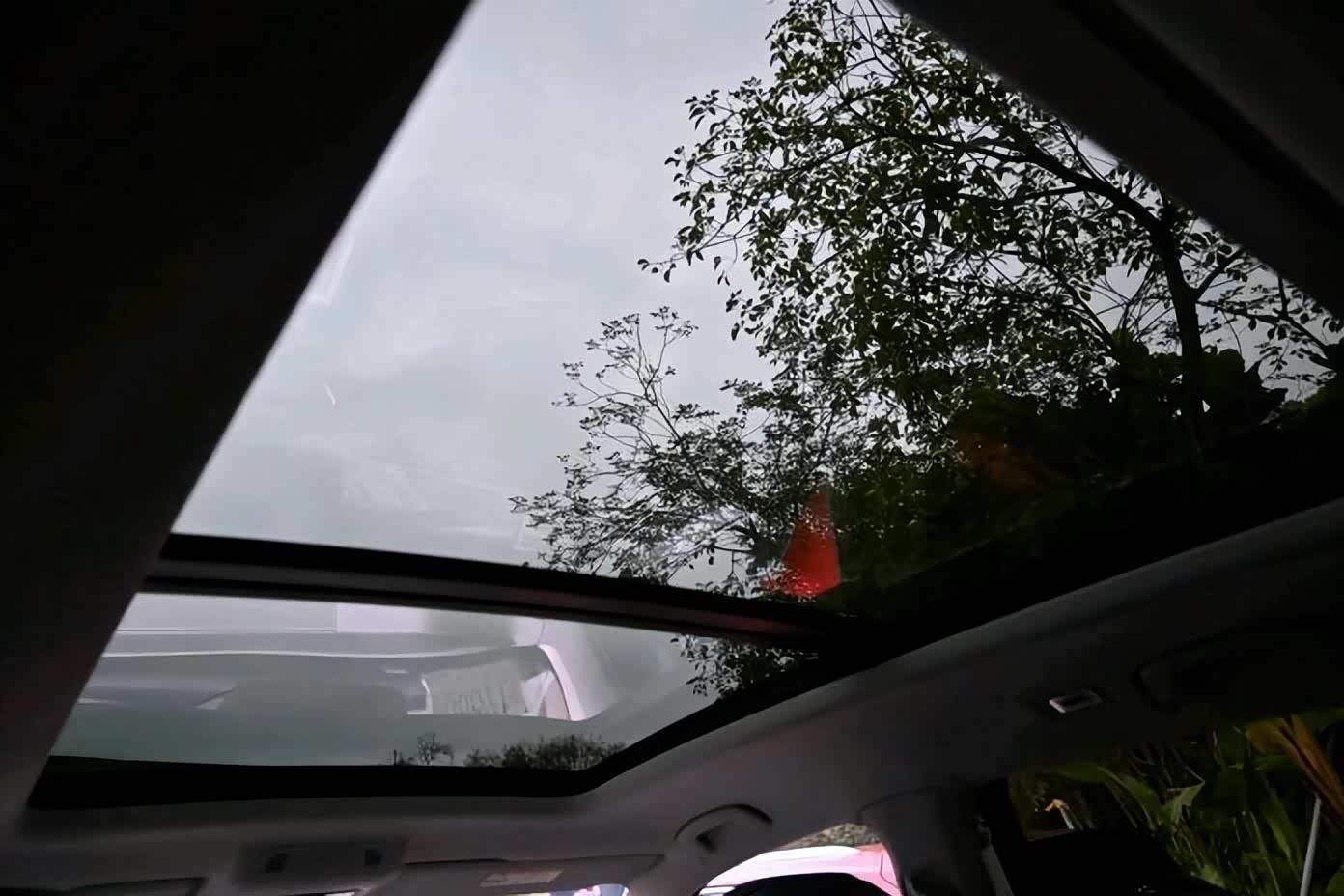 座舱的前排空间也很大,扶手箱、镂空储物槽、门内储物槽等,可以提供一个十分不错的储物能力。还有它的大天窗,从前排座椅延伸至后排座椅,视野十分宽阔,特别适合在夜晚开出去和家人朋友一起在车内看星空。一整个夜空的繁星都能尽收眼底,让这个冬天实现不出车外吹冷风也能看到星星的自由。