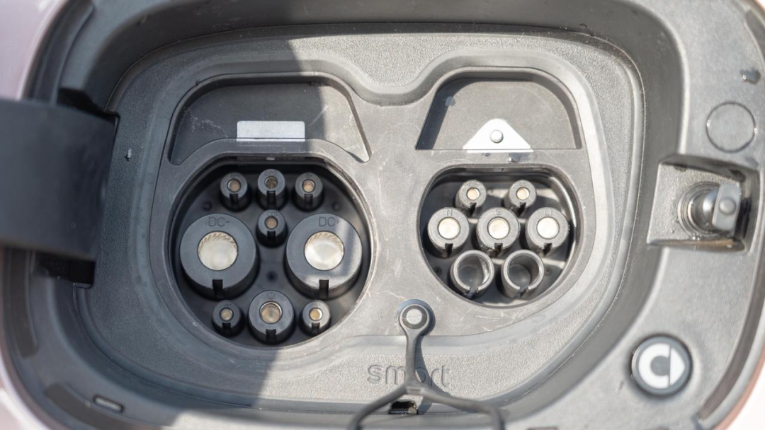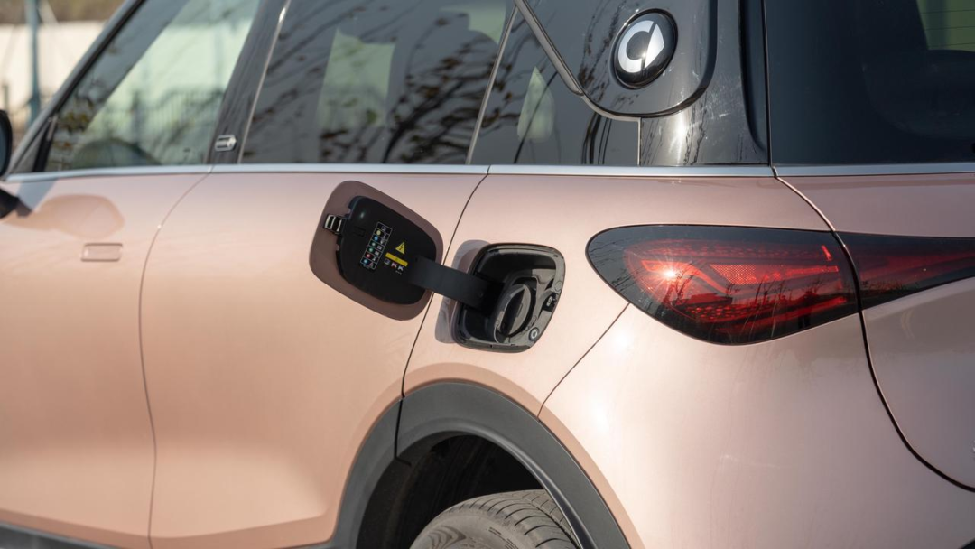 快充口和慢充口被统一放置在了车身左后侧,充电盖板为手动开启。两个充电口上方都有保护盖,右下角还能看到 smart 的 logo。