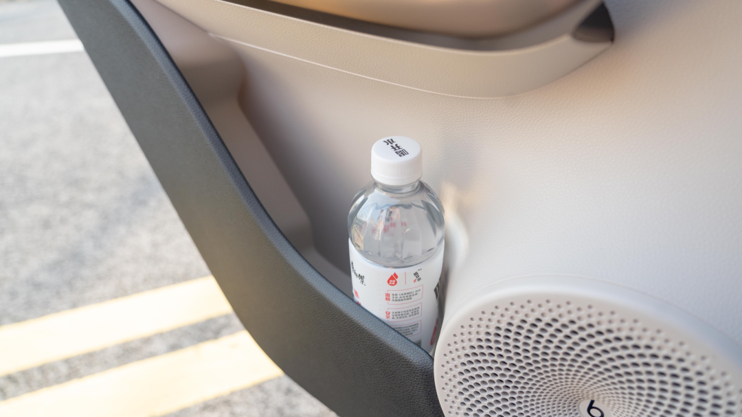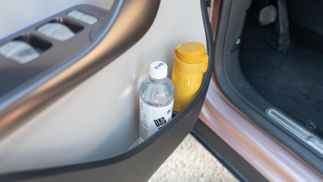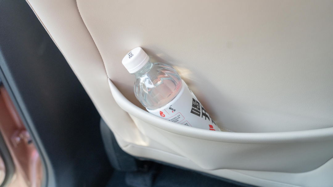 前排门板的储物空间较为充裕,至少可以放置三瓶 500 ml 矿泉水,正常情况下放置擦车布、纸巾之类的杂物是没有任何问题的。