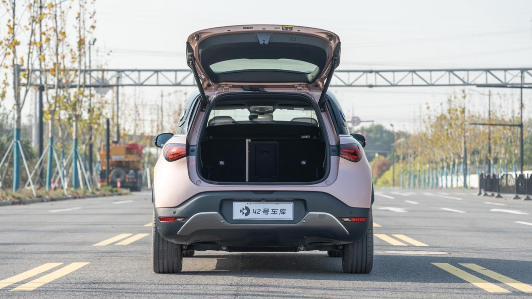 Premium 版支持电动后备箱与脚踢感应,打开后备箱可以看到自带一个可拆卸遮物帘,后备箱空间与其他的小型 SUV 相比是同一水准,支持 4/6 放倒,具体尺寸如图所示。