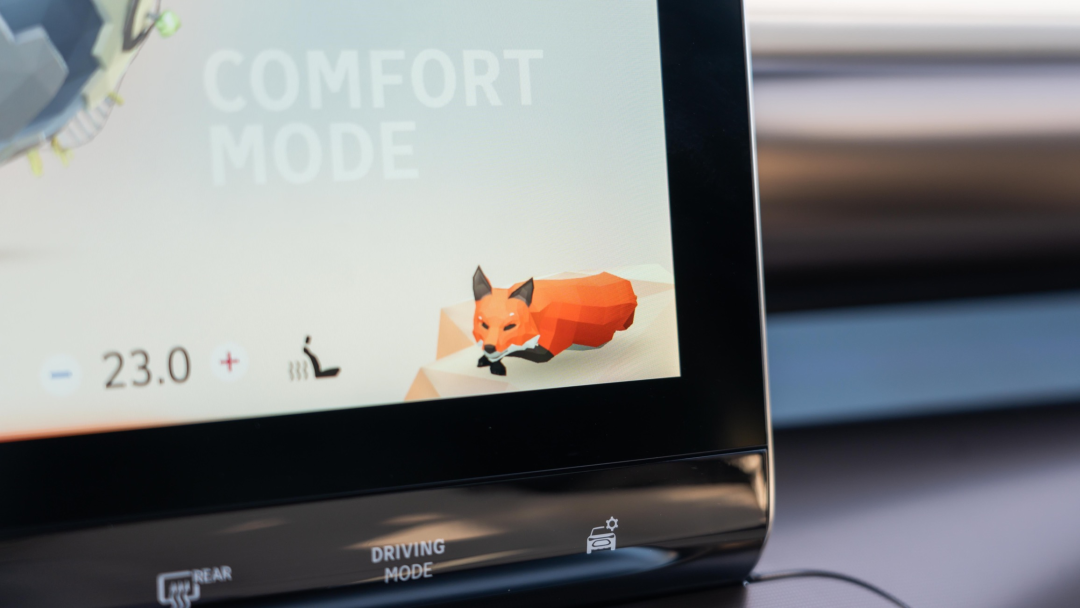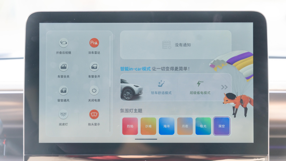 而右下角,则是精灵 #1 的语音助手形象,没错是一只小狐狸。smart 官方为其设计了多种不同的姿态,很像在桌面养了一只小宠物。除此之外,车机内还支持修改为其他多种形象,不过该功能需要付费使用。