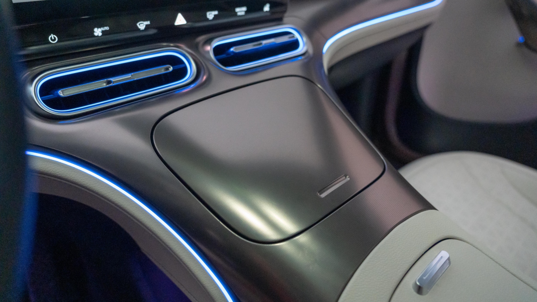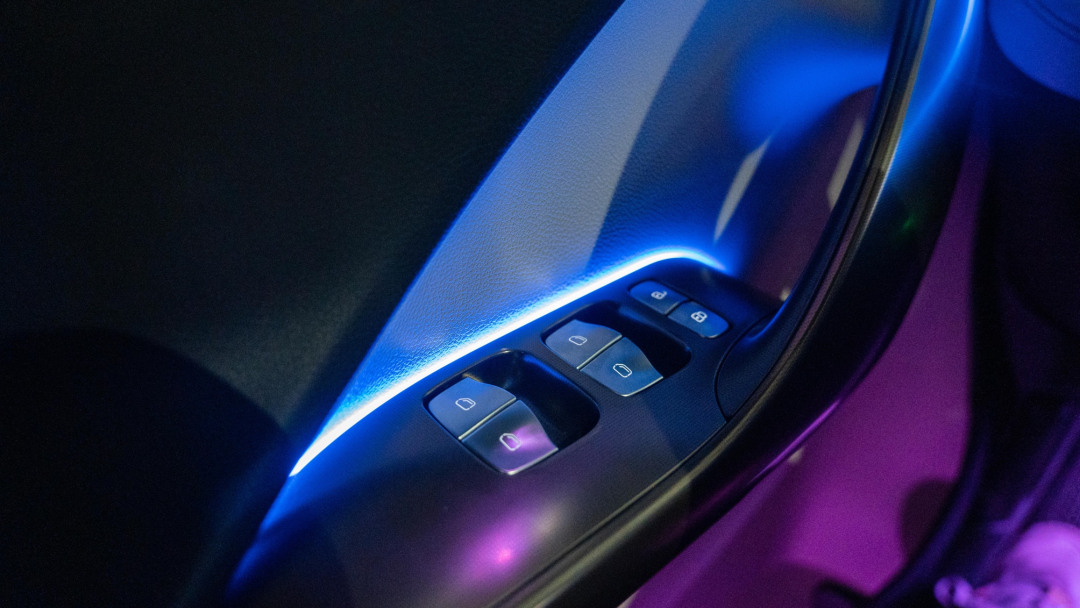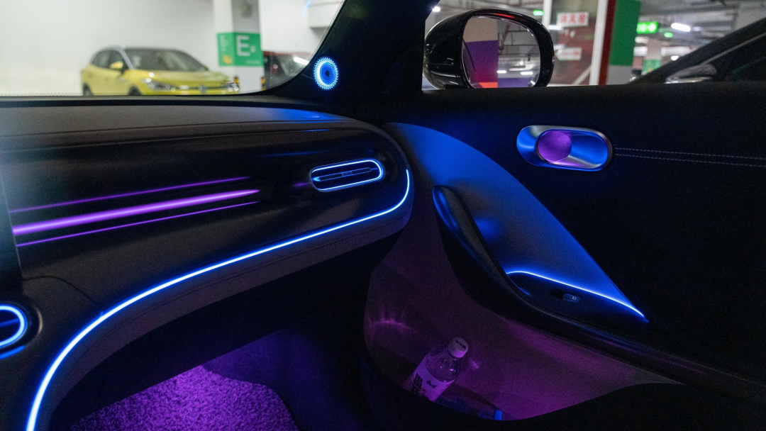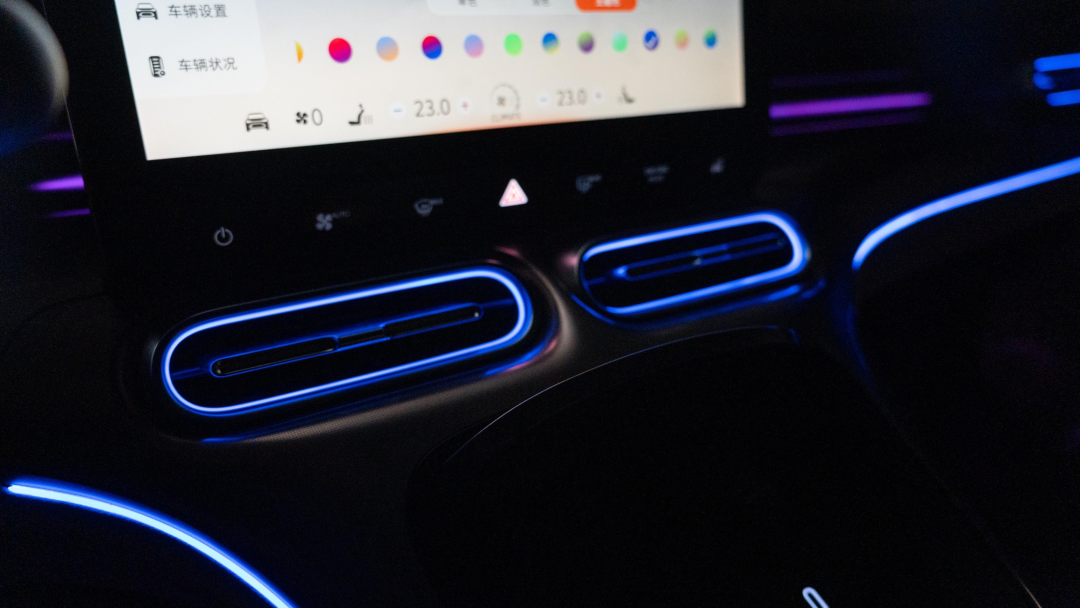 而进入车内,看着满车亮起的氛围灯,浓浓的奔驰味儿扑鼻而来。不管是不是夜店风,在我看来,甚至有一些 EQS 那味儿了。