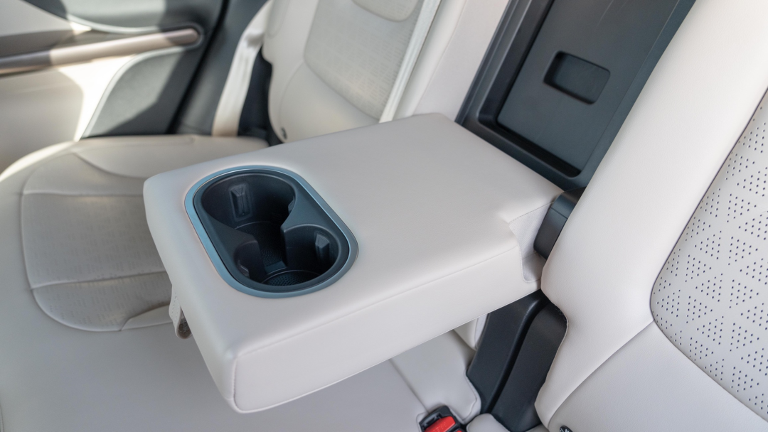 可能因为后排中央扶手仅有两个杯架,这一块的填充物较为柔软。再加上纯平的地台,坐在后排中央的乘客也不会有太强的不适感。