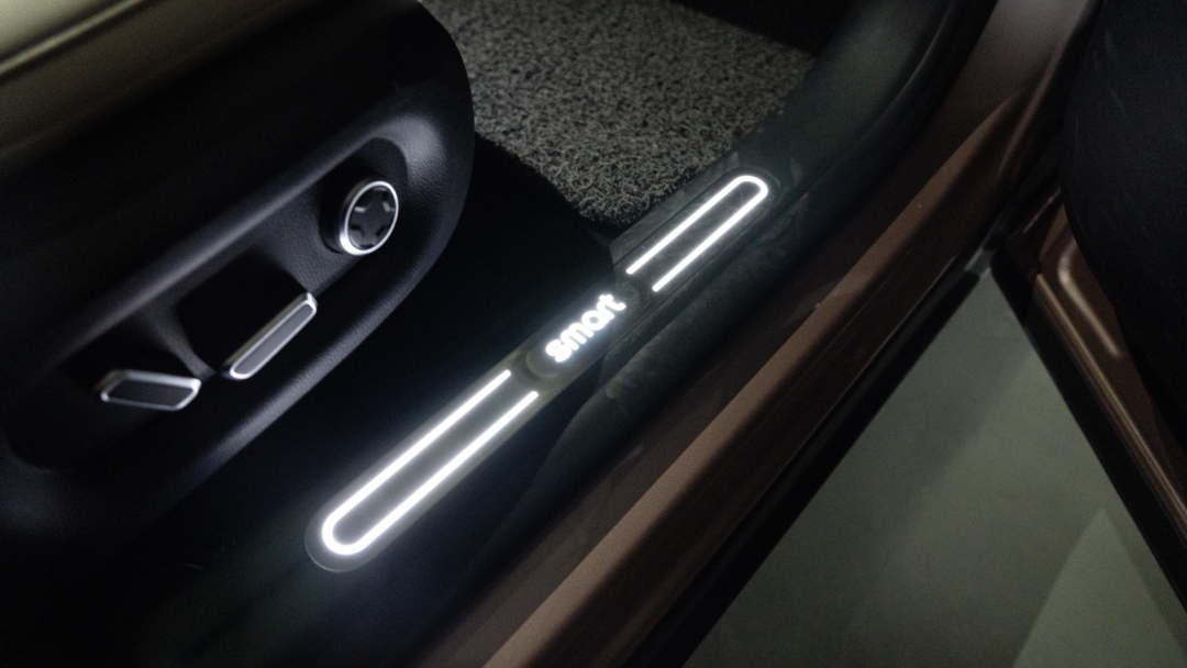 晚上车辆解锁时,车辆两侧会投射出 smart 字样的迎宾灯,增加了上车时的仪式感。