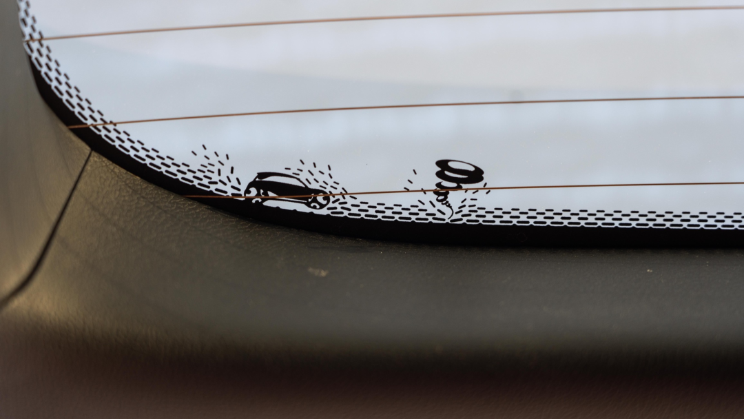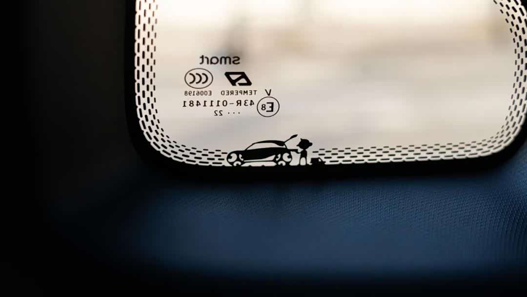 最后,在前挡风玻璃主驾前方、后排小三角窗以及后挡风玻璃上,smart 设计师很细节地在这里加上了三个精灵 #1 样式的窗花,算是一个小小的彩蛋。