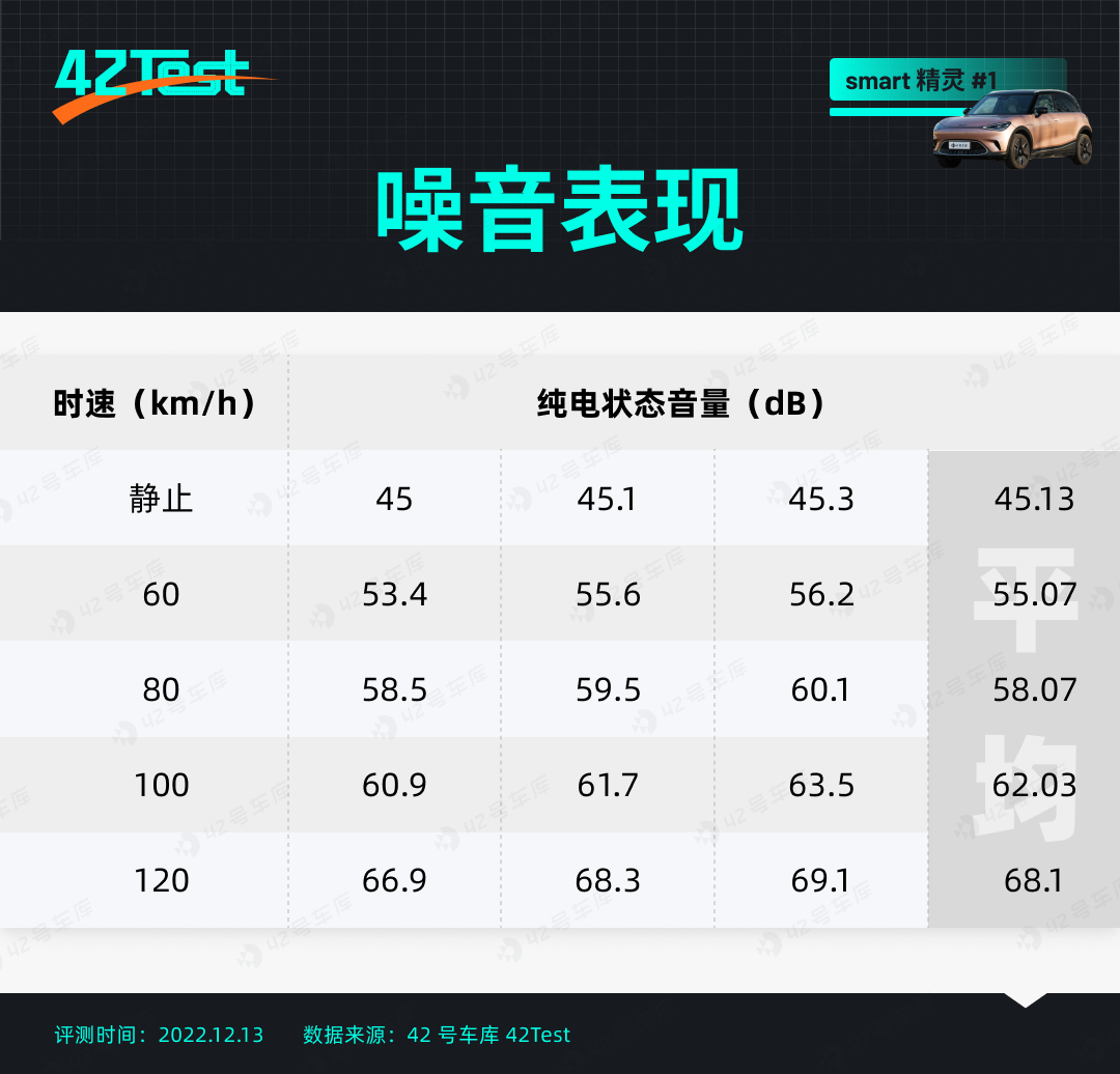 smart 精灵 #1 全系都采用了无框车门和单层玻璃,在 20—25 万这个价位并不是什么问题,那么它的 NVH 实际表现如何呢?