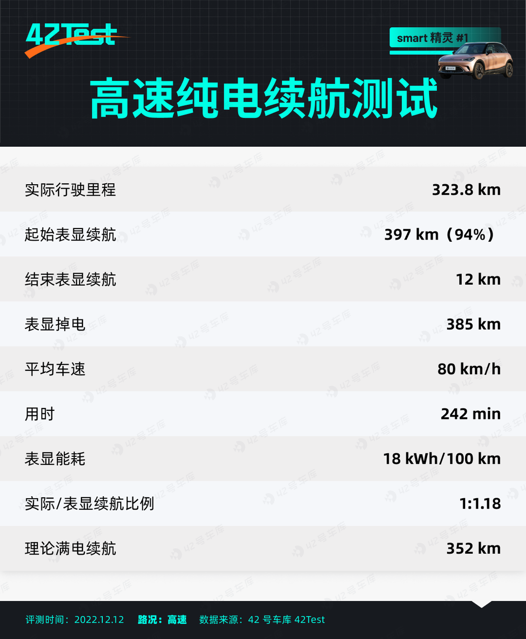 如果 smart 精灵 #1 的高速续航还不能让你满意,那么城市续航的成绩应该能让你满意。