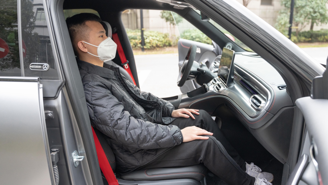 空间演示部分我换成了 BRABUS 版车型,与普通版相比仅有长度长了 3 cm,内部空间表现与普通版基本一致。将副驾座椅调整为与主驾一致,可以看到身高 173 cm、体重 60 kg 的靓仔老师坐进去丝毫不会显得局促。前排的头部空间巨大,足足有三拳半的空间。