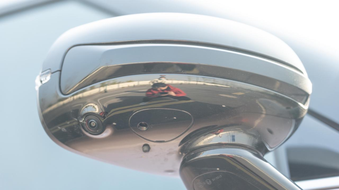 后视镜采用了与整车一样的圆润设计,侧向环视摄像头被设置在后视镜下方。