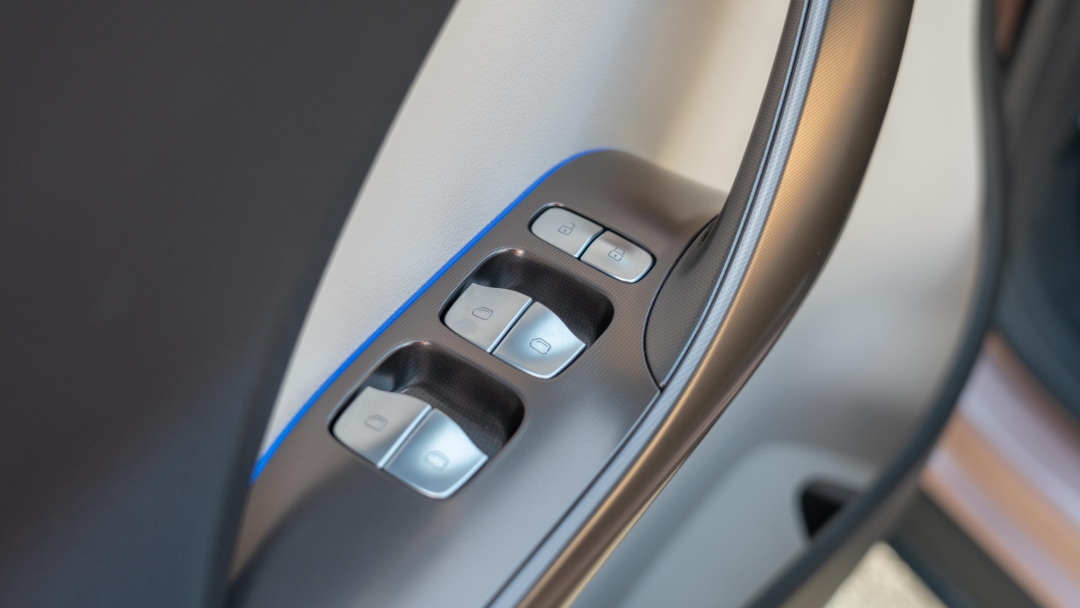 车门按键比较精简,只有车窗控制和车门上锁解锁按键,后视镜调节相关功能被集成在了中控屏中。另外虽然按键是塑料的,但由于采用了高亮的银色,看上去会更有质感