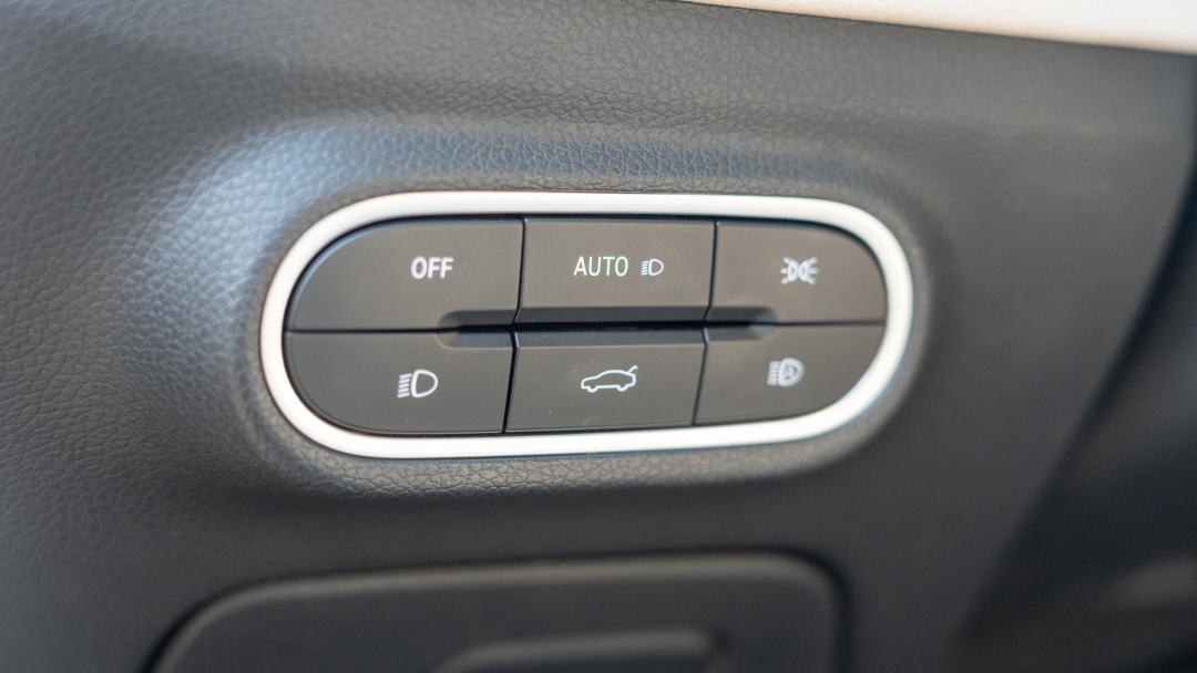 方向盘左下角保留了 6 个常用的物理按键。除了灯光控制相关,还有一个后备箱开关的物理按键。
