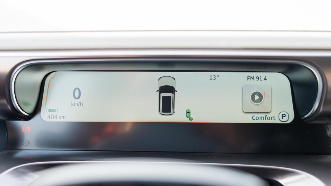 首先坐上车并调好座椅之后,会发现驾驶视野非常好。这不仅得益于 SUV 较高的坐姿,也得益于精灵 #1 细长的 9.2 英寸仪表屏,让出了不少视野。