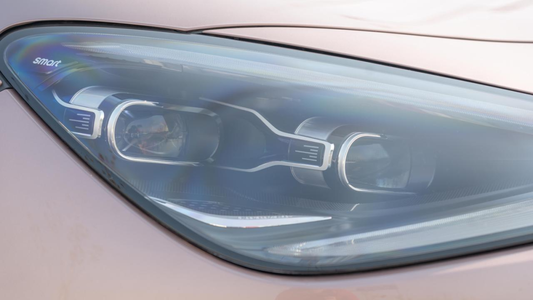在 Y 字型日行灯的中间还藏着远近光灯,细看可以看到两个灯组侧面都带有一个类似于均衡器调节的图案,从这里开始就可以看到 smart 设计师在细节上藏着自己的各种小心思。