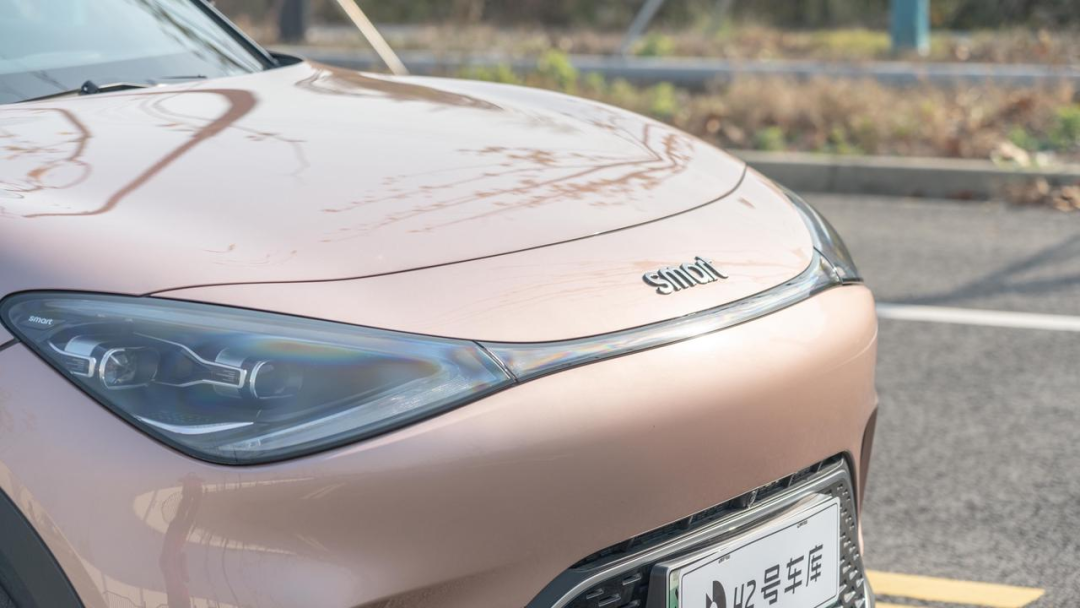 从车头正面看过去,想必即使把车标挡住,很多人也能猜到这是一辆 smart 品牌的车型。各种圆润的线条设计、Y 字型的贯穿式日行灯、以及相比很多纯电动车更大的进气格栅是其独特的标志。