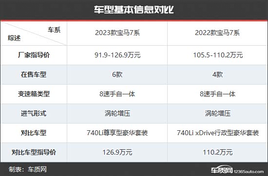 第七代宝马7系共推出6款配置车型,售价区间为91.9-126.9万元。对比在售的上一代车型来说,多出了两款。对比来看,整体价格区间更宽泛,尤其是入门车型,售价下探到了百万以内。此次分别挑选了两个顶配车型来进行对比参考,虽然价位稍有差距,但可以更直观发现新老款车型的配置差异,更具参考意义。