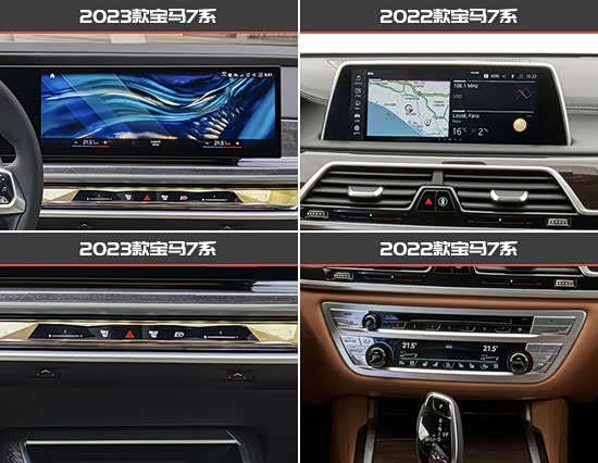 在内饰方面,第七代宝马7系的设计更简约奢华,新老款车型虽然整体布局相同,但在细节方面有了明显的区别,新款车型的用料和配色明显要比老款车型更加时尚奢华,打破了老款车型沉闷的内饰氛围。