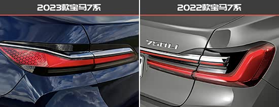 尾部设计方面,第七代宝马7系取消了贯穿式尾灯和外露式排气管装饰口的设计,取而代之的是更为修长并富科技感的尾灯组和后包围底部的贯穿式银色装饰条。相比老款车型,新款车型的尾部变得更为简洁,虽然少了一些庄重感,但时尚感有所增加。