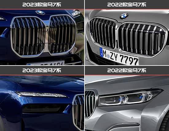 新车最显而易见的变化就是车头的双肾型格栅和头灯灯组,第七代宝马7系的双肾型格栅相比上一代车型,收窄并拉高了许多,在视觉效果上不显得那么扁平了。另外,上一代车型和格栅相连接的头灯样式也被取消,取而代之的是细长的分体式头灯设计。