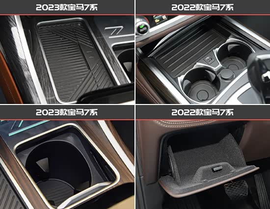 储物空间方面,二者都有着相对常规的储物槽设计。第七代宝马7系的地台处只有一个杯托设计,相比之下实用性可能略微差了那么一点点。