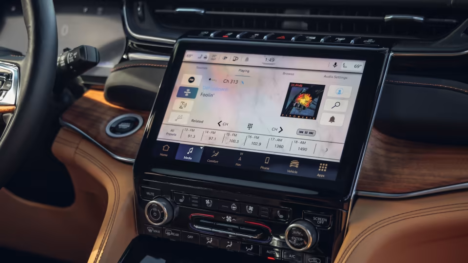 具体来看,无论是大切诺基还是早前上市的大切诺基L都提供3款配置级别,大切诺基自低至高的配置级别和售价分别为Night Eagle(37.36万元)、Limited(40.24万元)和Overland(47.19万元)。大切诺基Night Eagle配备了20英寸亮黑轮圈、自动LED大灯、8向电动调节前排座椅(带四向腰部支撑)、前排座椅加热、方向盘加热、6扬声器音响、10.25英寸全液晶仪表、10.1英寸中控屏、无线苹果CarPlay和Android Auto、手机无线充电、电动尾门开启、自适应巡航系统、车道保持辅助系统、自动紧急制动等等。