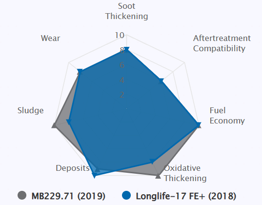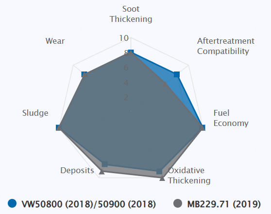 然后我们比较一下大众VW 508/509和奔驰MB229.71“孰优孰劣”:通过对比,我们可以看到:奔驰MB229.71在活塞积碳清洁性、抗氧化(长效性)方面的要求,稍微高于大众VW 508/509;但在尾气处理装置兼容性上,“大众”却反而明显高于“奔驰”……有点意思。