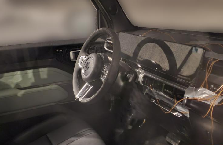 内饰虽然还没有完全装备完毕,但大致的轮廓已经成形,方向盘为三幅式正圆形设计,一看就是冲着实用性去的。由全液晶仪表盘和悬浮式中控屏组成的贯穿式联屏,为车内带来了不错的科技感。空调出风口为矩形设计,周围还增加了银色镀铬饰条装饰,整体的质感还不错。