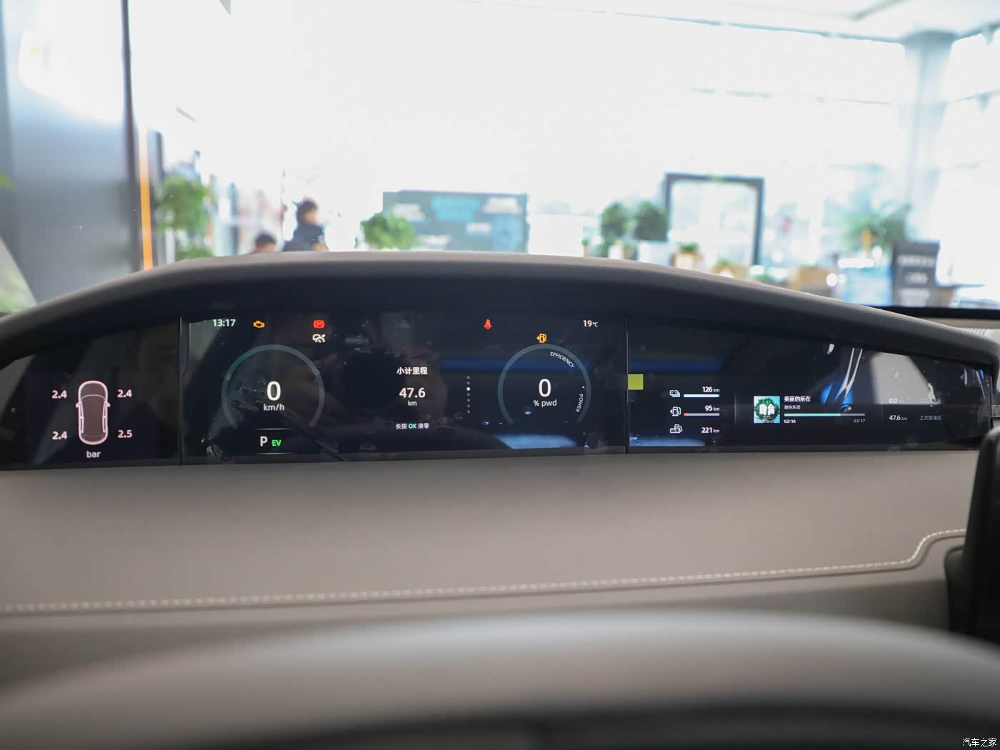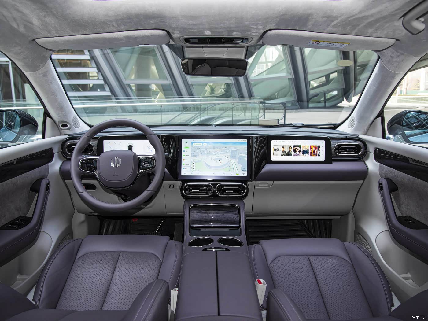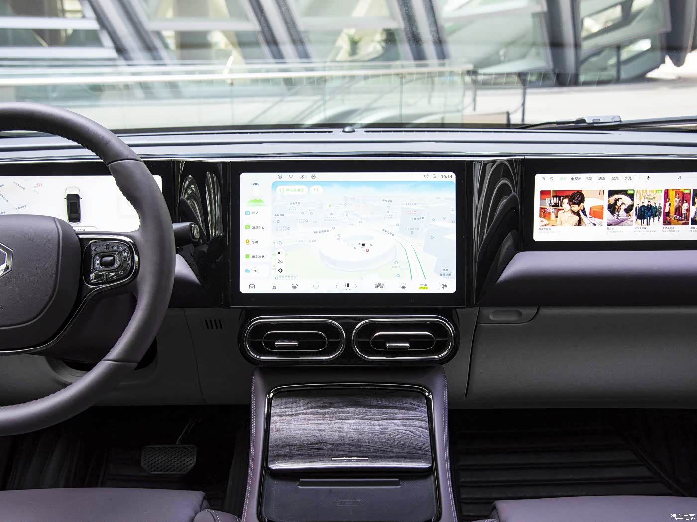 零跑C11增程版的中控部分采用了T字型的布局,由3块屏幕组合而成,科技氛围还是很足的。换挡结构为方向盘后方的怀挡式。