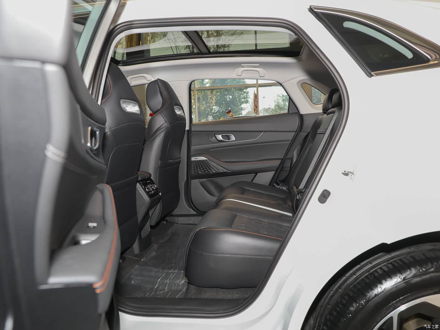 空间上,参考燃油版车型,身高175cm的体验者前排可获得1拳四指的头部空间,进入后排可获得1拳3指的头部空间以及2拳多的腿部空间,并且中间地台也是几乎纯平的设计,乘坐5人时,可以更加舒适。
