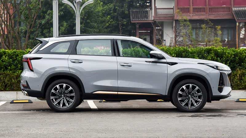车身侧面,车身翼子板十分修长,向后延伸的双腰线比较简洁,将运动与时尚感融合得天衣无缝,D柱独具特色的折弯镀铬饰条营造出了悬浮式车顶的视觉效果。尺寸方面,全新长安CS75 PLUS的长宽高分别为4700/1865/1710mm,轴距是2710mm。而全新设计的R19双色10幅铝合金轮毂与整车气质十分搭配,显得十分动感