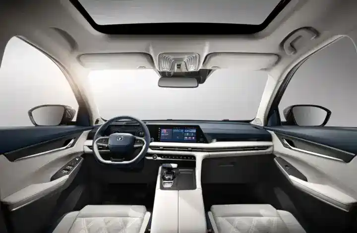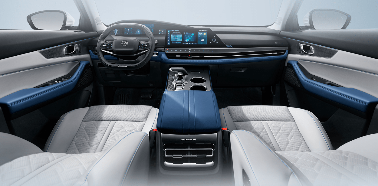 车内设计与现款相比同样提到了质的提升,车内大量运用皮质材料包裹,并采用了非常多的红色加黑色的双拼色布局,质感得到了进一步升华。而双色设计的游艇式电子档把,平底式多功能方向盘搭配中控区域的双12.3英寸一体式曲面大联屏,内置了新一代IMS智能交互系统和“小安”智能语音交互系统,支持HUD抬头显示、FACE ID人脸识别等功能,整体营造出低调豪华且充满科技感的内饰氛围。