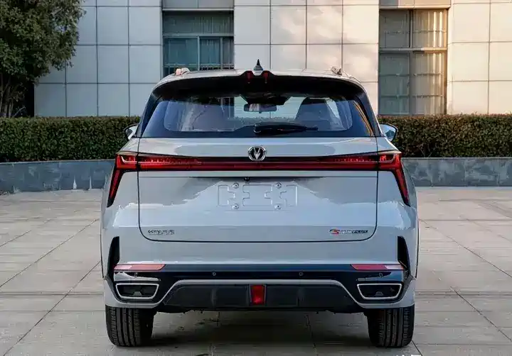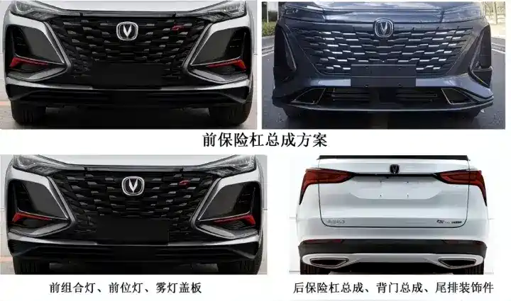 外观方面,作为中期改款车型,新车外观延续现款,但细节变化非常明显,首先中网采用了镀铬装饰和熏黑联合设计,前脸的直瀑式格栅开始加入长安UN系列车型的元素,配合贯穿式狭长的LED前车灯,整体的外观气场发生了明显的变化,有点类似纯电车型的效果。