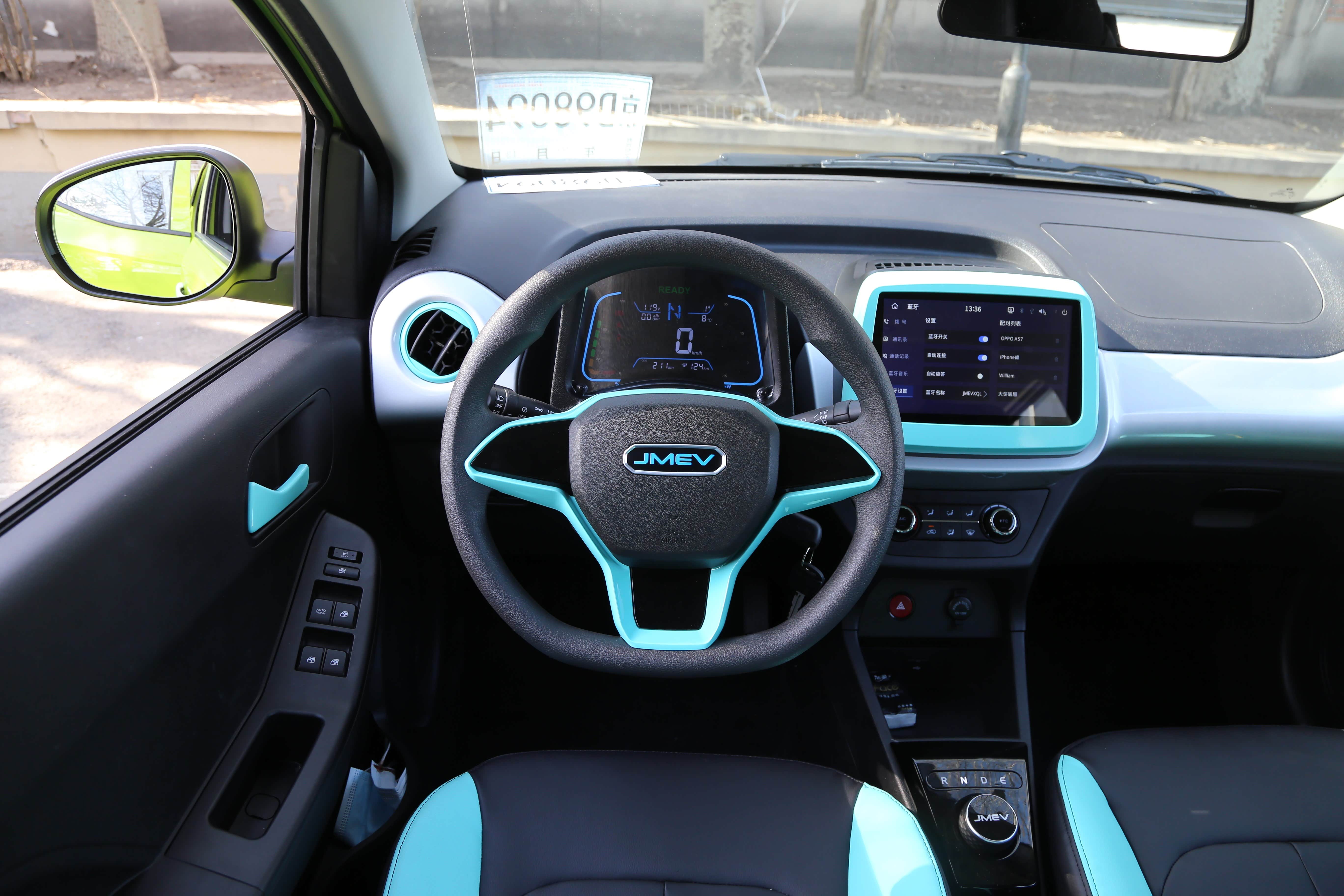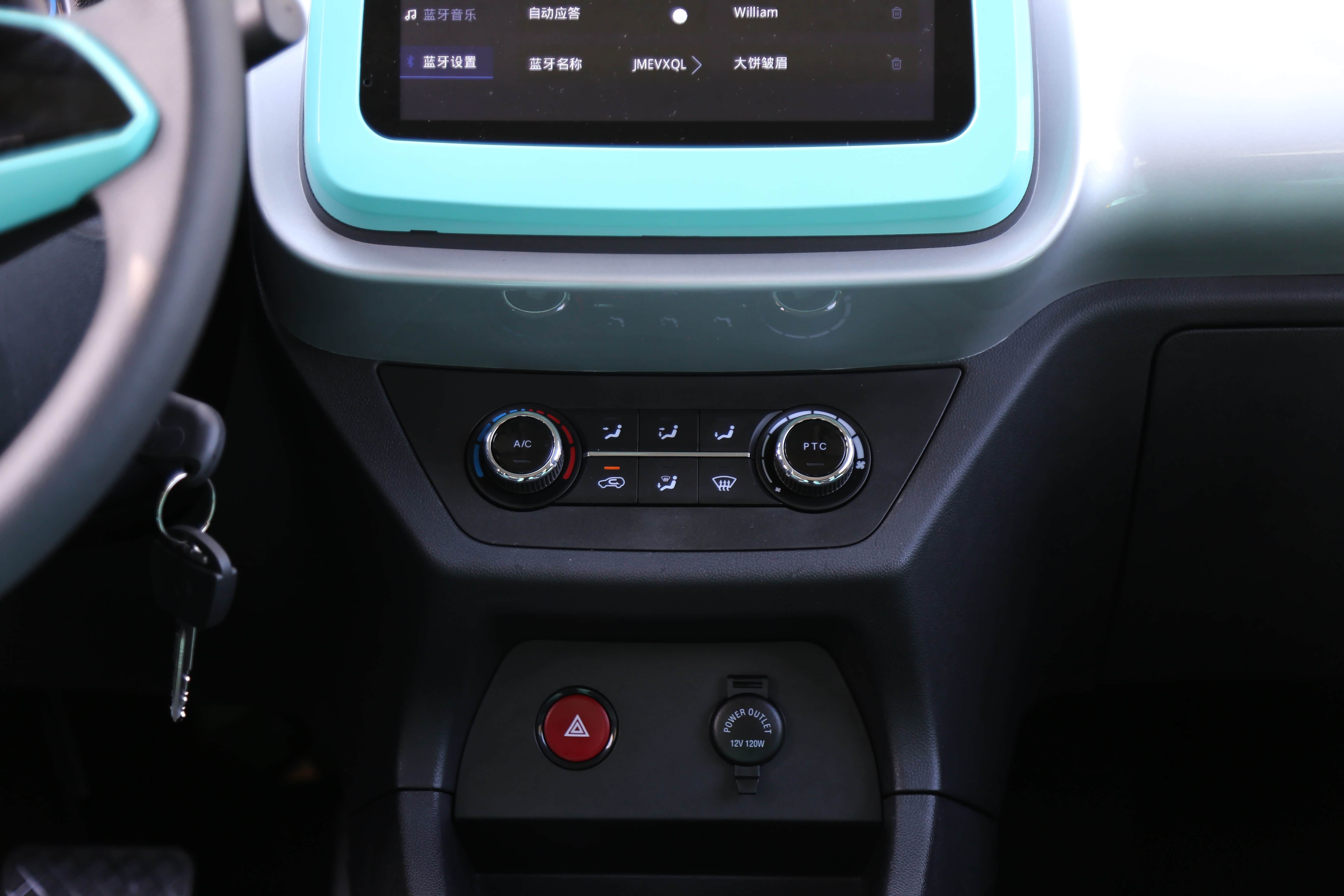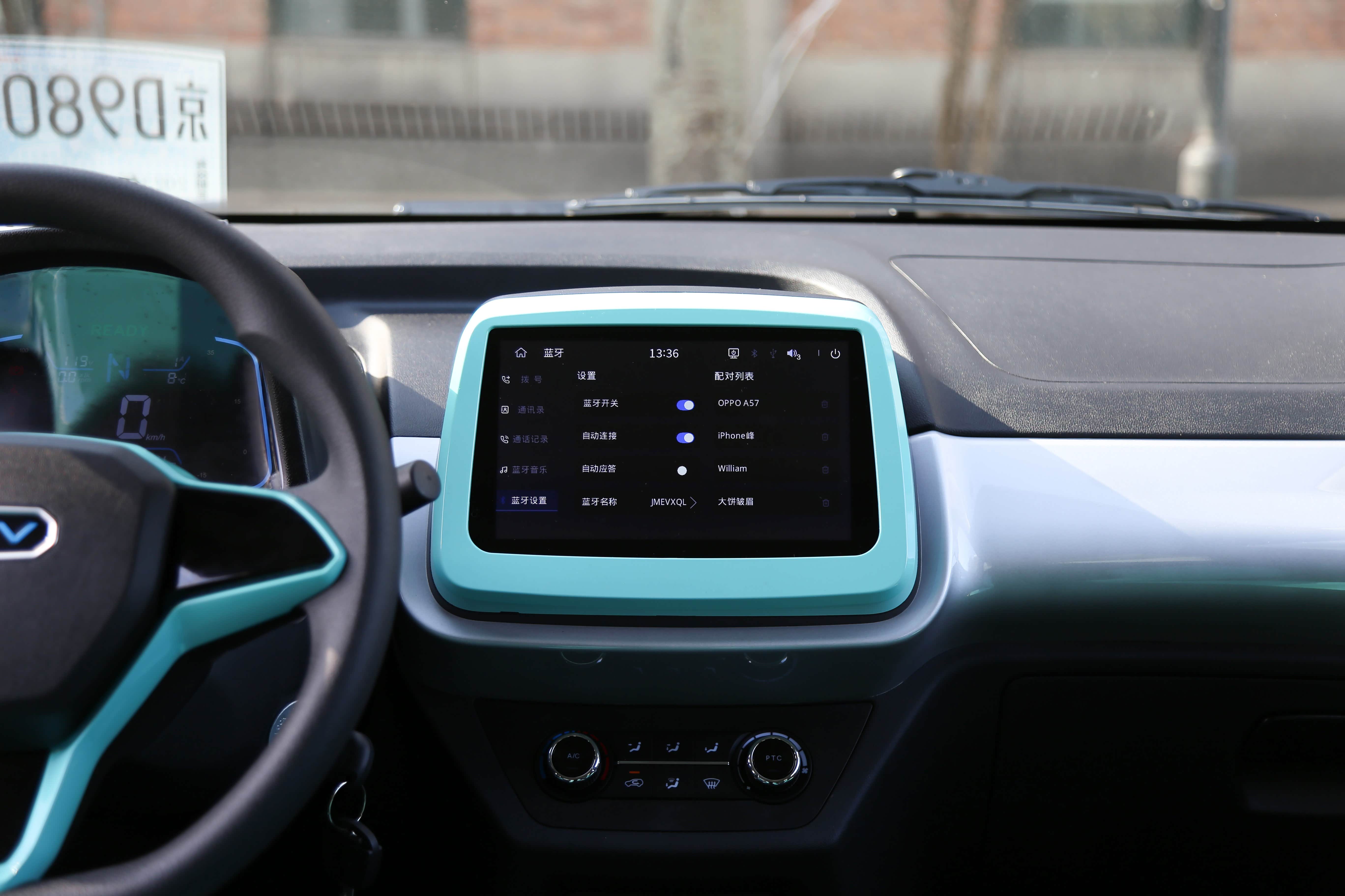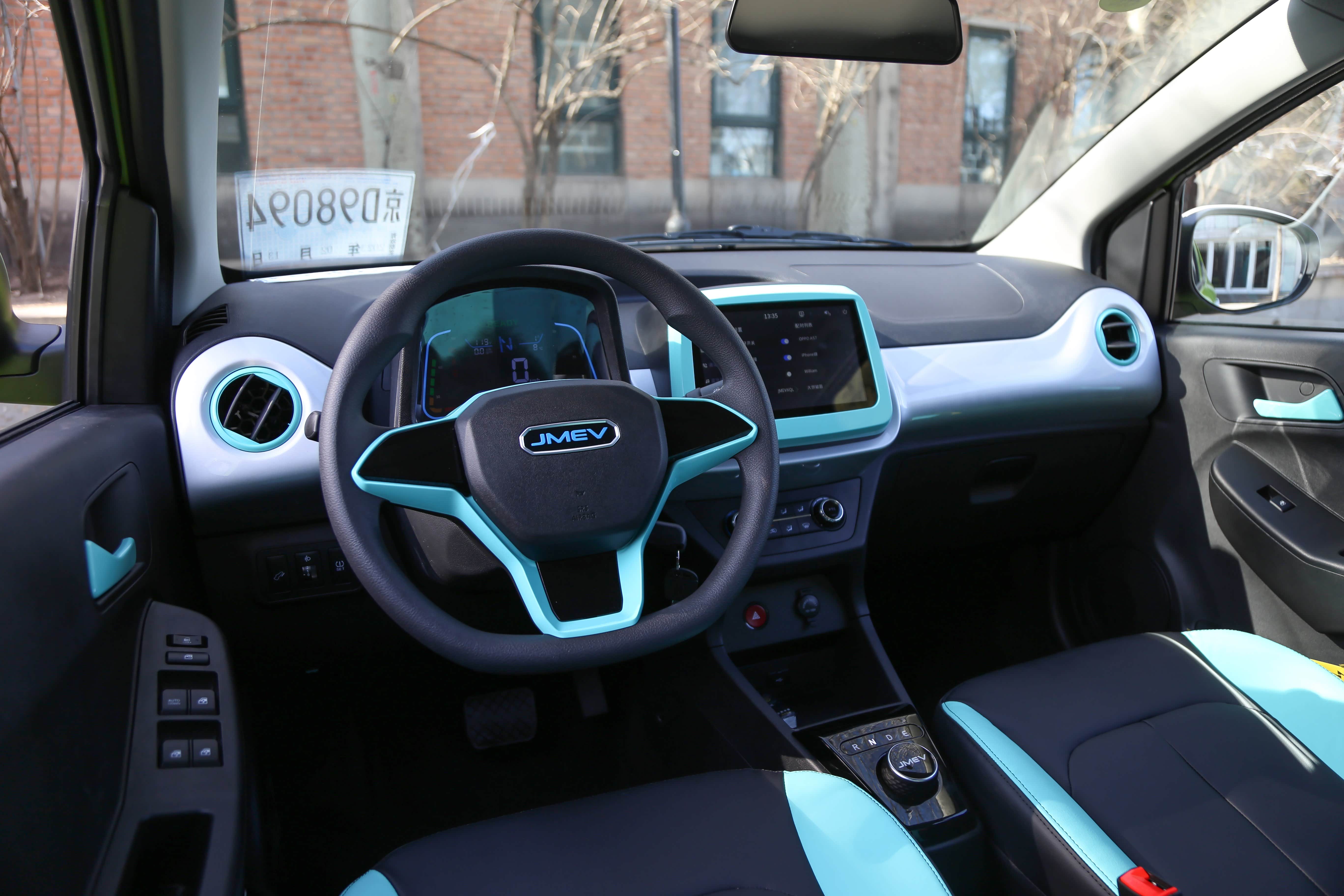 进入到车内,让人万万没想到,这个价位的产品还能拥有彩色仪表与中控屏,空调出风口的设计也是别具一格,周围包裹这一层淡蓝色。