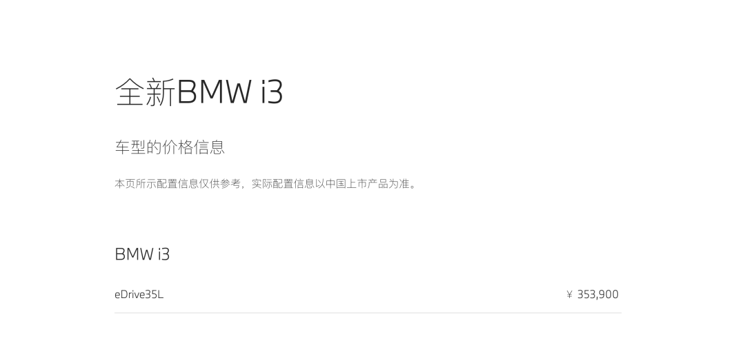 i3于2022年3月正式上市,目前的i3 eDrive 35L车型的指导价为35.39万,今年2月20日还会推出i3 eDrive 40L车型。