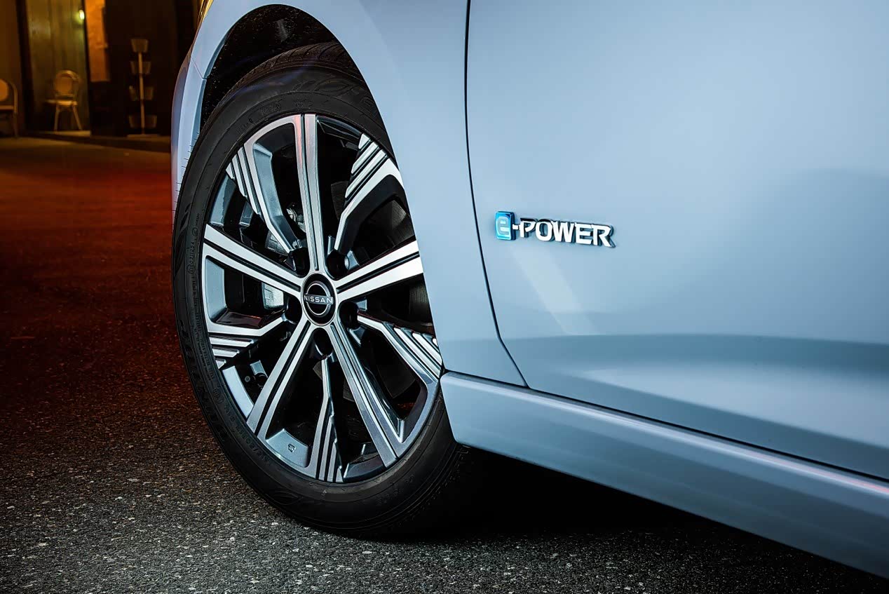 值得注意的是,新车新增了冰岩蓝曜石黑双拼车色,个性化全黑车顶完美勾勒修长的车身轮廓,更具运动气息。下门板位置的“e-POWER”镀铬徽标,与全新轩逸进行了区隔,也在时刻强调自己特殊的混动身份。新车还将搭载全新的17英寸峰纹切削式大轮毂,大刀阔斧的棱角以及山峰形本刻纹理,强化了整车澎湃高能的视觉效果。